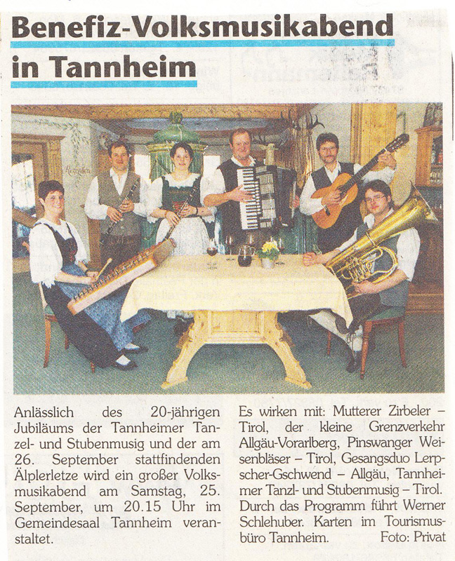 Peter Kling sieht eine Chance diese „Tanzbodenmusik“, wie sie im alemannischen Sprachraum genannt wird, bei uns wieder zu beleben und nimmt kurzer Hand mit den Tirolern Kontakt auf. Das Angebot einige handgeschriebene Notensätze gegen den Wert von 100 Liter Bier steht und tatsächlich, einige Wochen später treffen die Noten ein. Postwendend geht der Gegenwert für 100 Liter Bier ab nach Tirol.