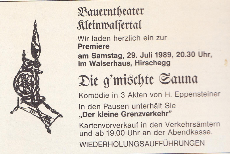 29.07.1989 „Die g´mischte Sauna“ Premiere beim Walser Bauerntheater