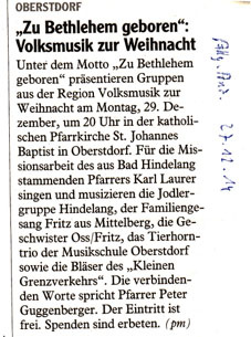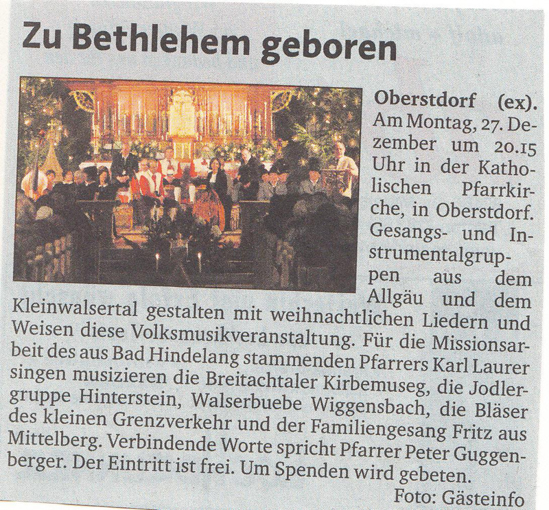 Zu Gunsten der Missionsarbeit in Venezuela des aus Bad Hindelang stammenden Pfarrers Karl Laurer, spielen und singen:
