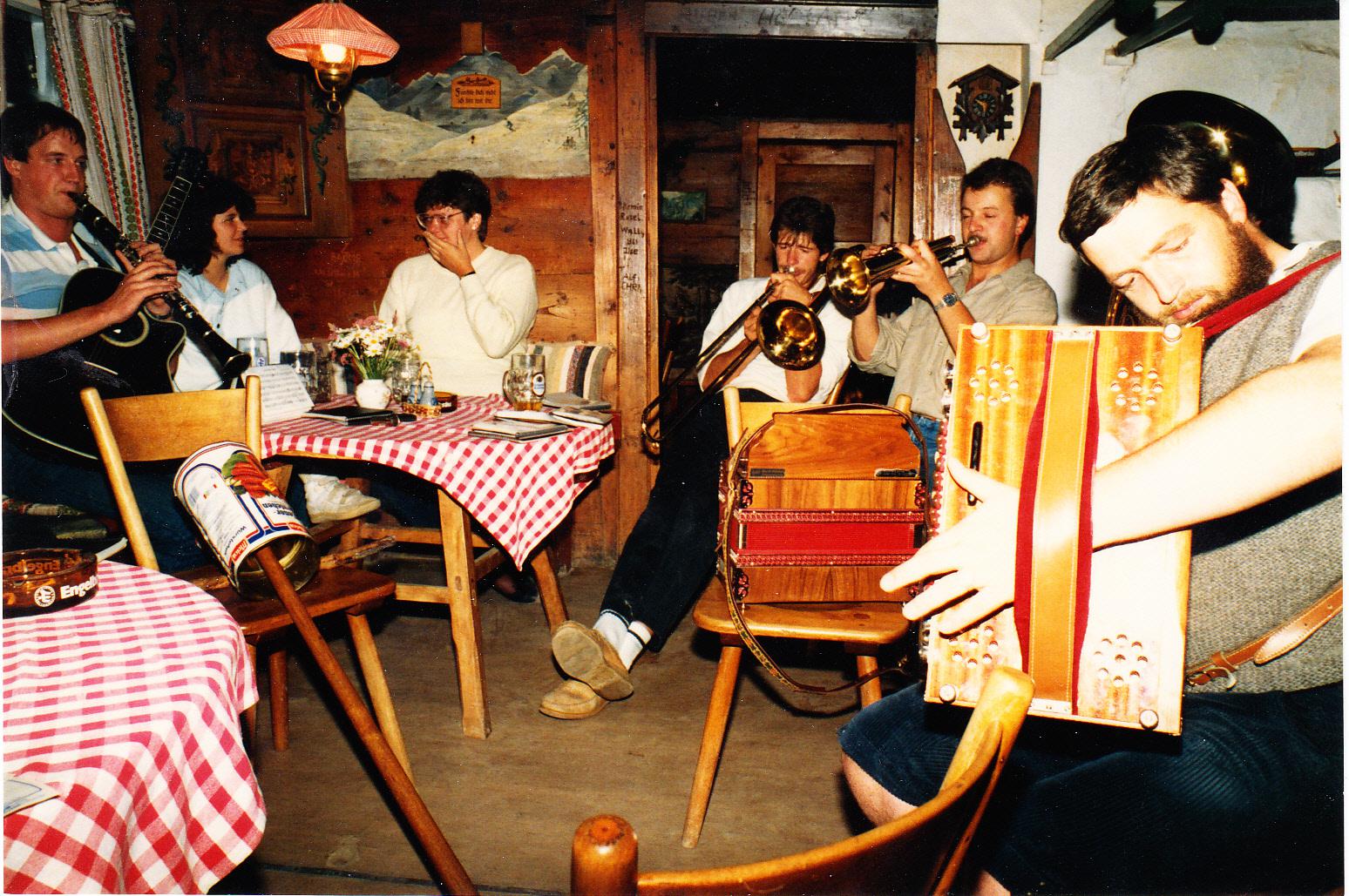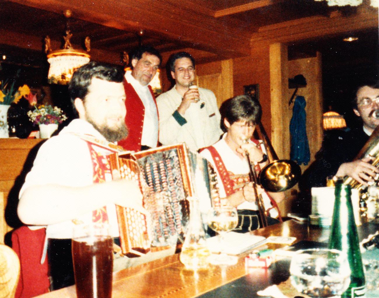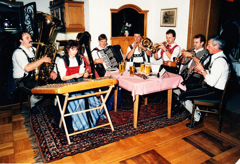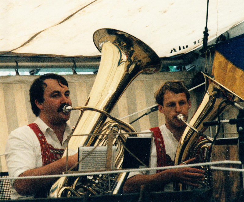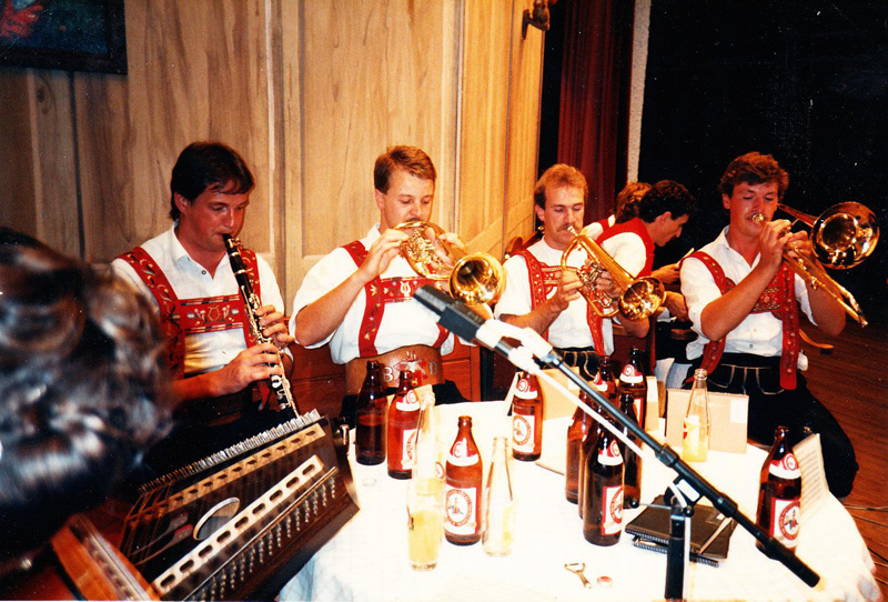 25.07.1988 Richard Math, Oberstdorf, Posaune, ersetzt Jörg King und spielt erstmals beim Musikantenstammtisch im Kreuzwirt.