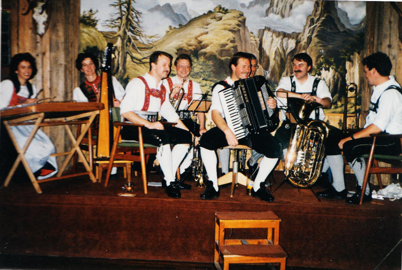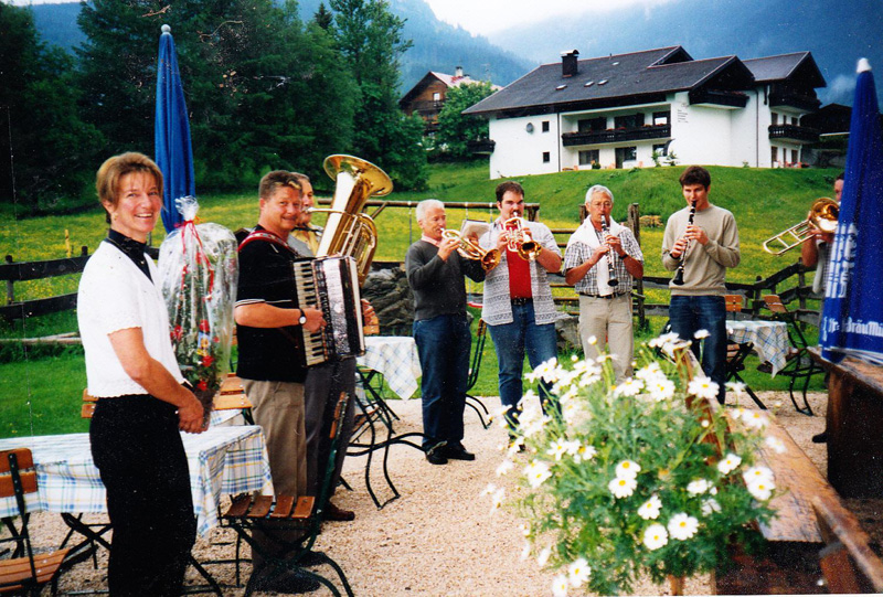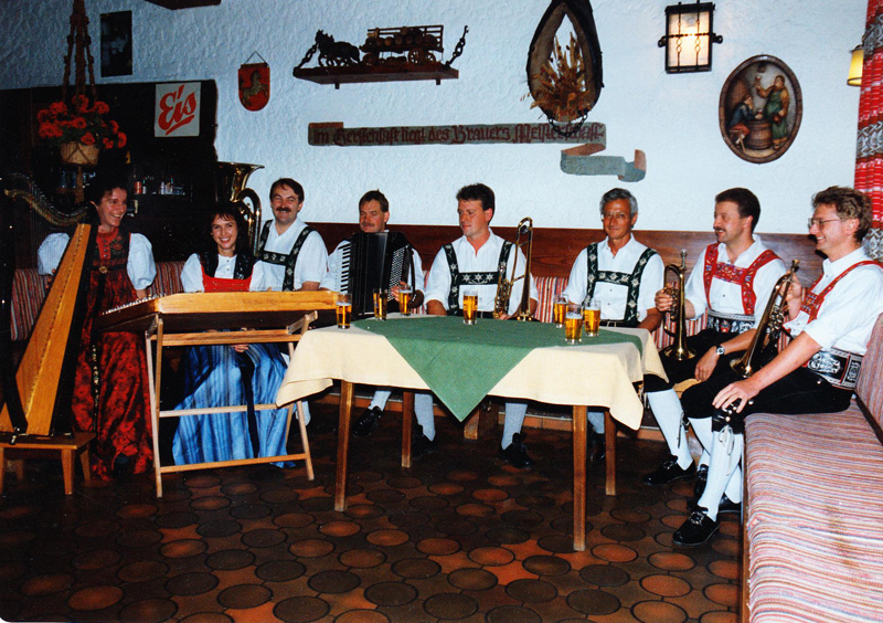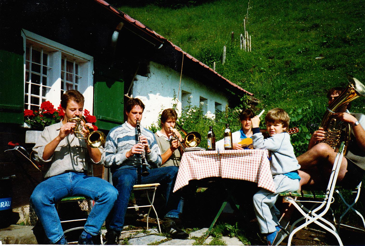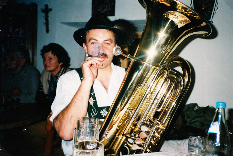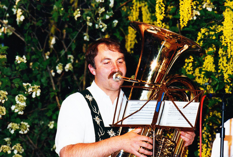 25.07.1988 Richard Math, Oberstdorf, Posaune, ersetzt Jörg King und spielt erstmals beim Musikantenstammtisch im Kreuzwirt.