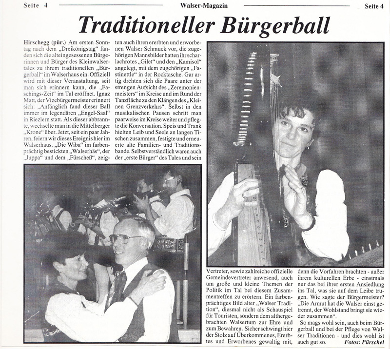 Zusammen mit den Wirtsleuten und mit Unterstützung von Ignaz Matt und einigen Helfern wollen wir den bereits seit Jahrzehnten verschollenen Bürgerball in alter Form wieder aufleben lassen.