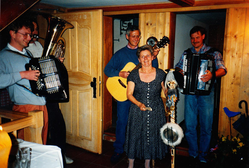 Nachfeier zum Geburtstag von Franziska Kling in der Schwabenhütte in Hirschegg. Gleichzeitig feiert der kleine Grenzverkehr sein 30-jähriges Bestehen. Auch Helmut Schuster ist mit nunmehr 90 Jahren dabei, dem der kleine Grenzverkehr am 21.09.1986 ein Geburtstagsständchen und damit den ersten offiziellen Auftritt verdankt.