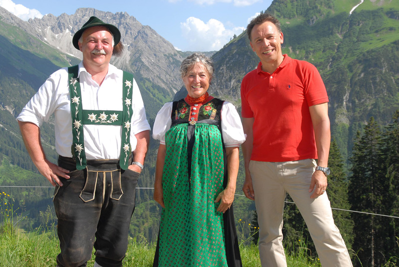 01.06.2012 Besprechung mit den Redakteuren des Bayerischen Rundfunks zur Vorbereitung der Sendung „La Vita", in der es um die Beziehungen der Oberstdorfer zu den Walsern gehen soll. Am Berg gibt es Kässpatzen.