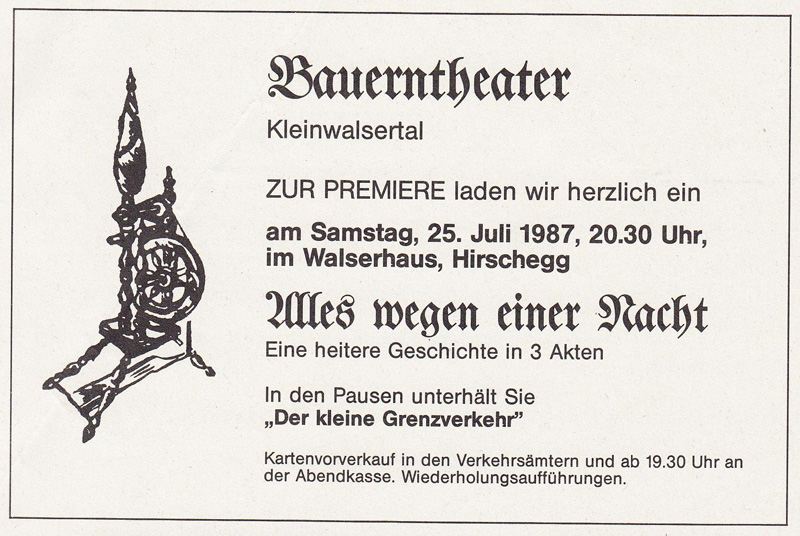 25.07.1987 „Alles wegen einer Nacht“ Premiere beim Walser Bauerntheater