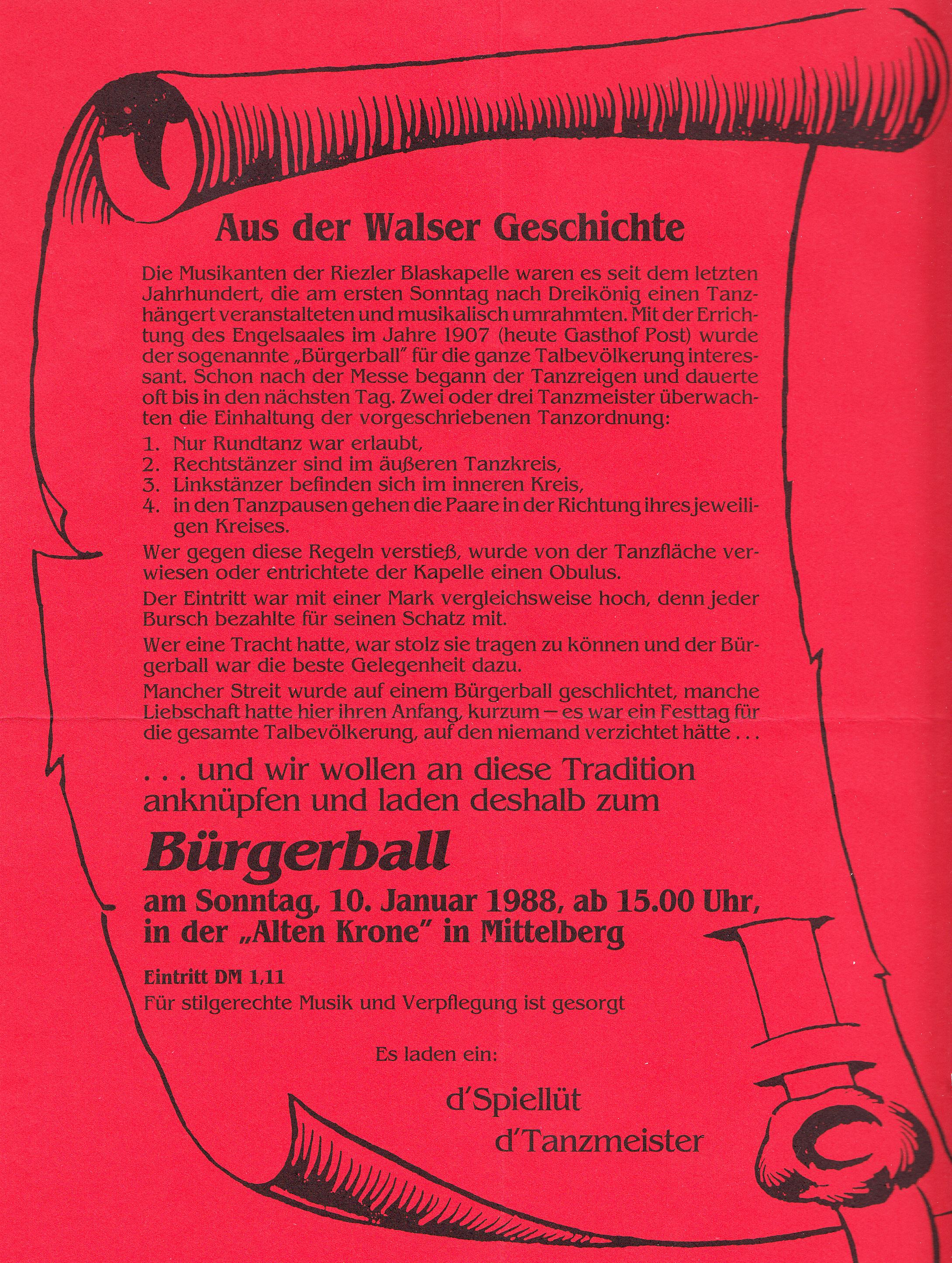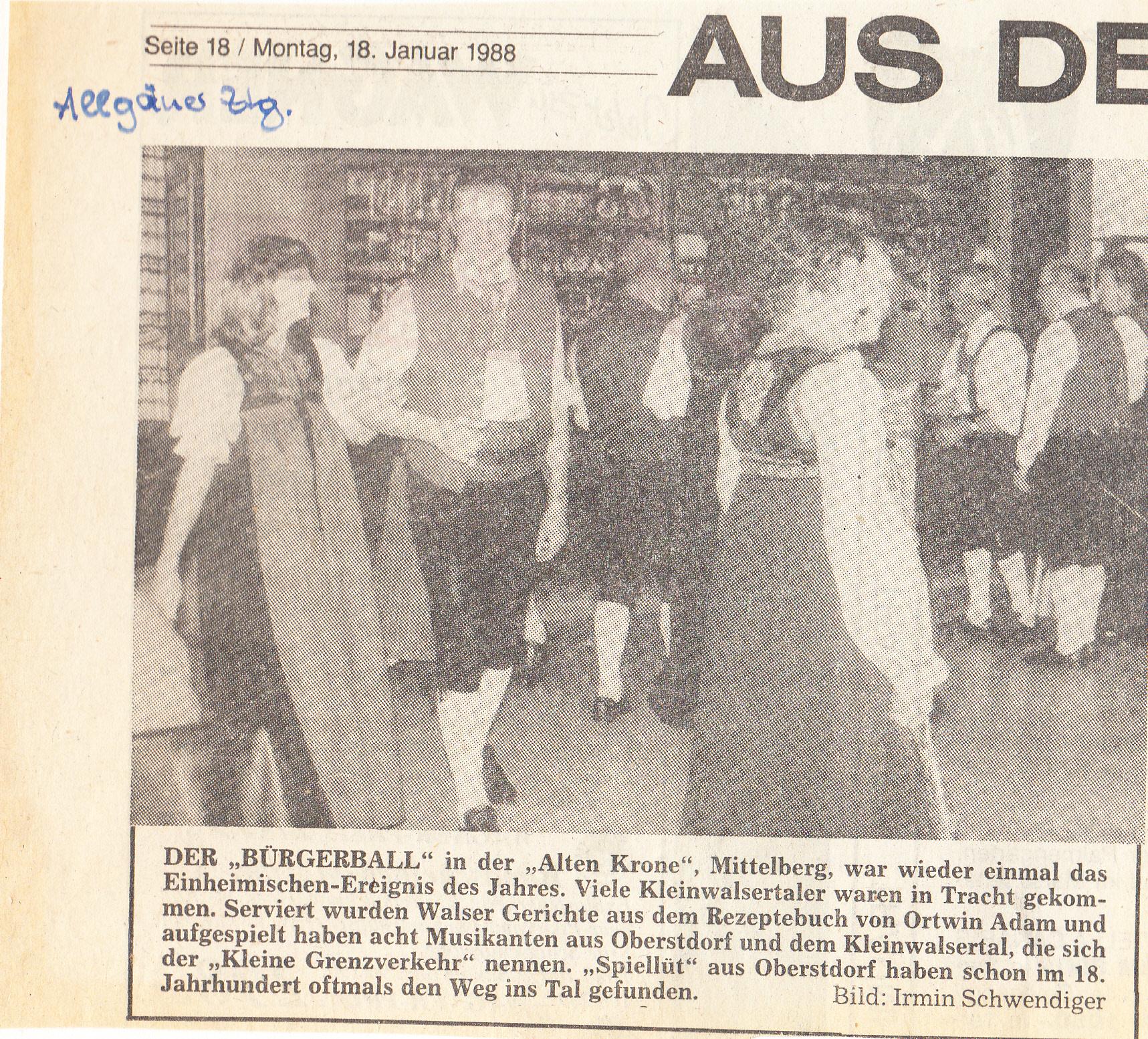 10.01.1988 Bürgerball in der „alten Krone“ in Mittelberg