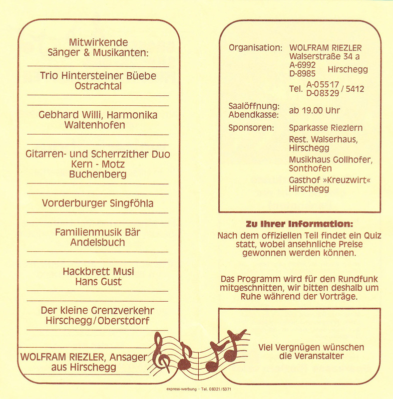 07.10.1989 Sänger- und Musikantentreffen im Walserhaus Hirschegg