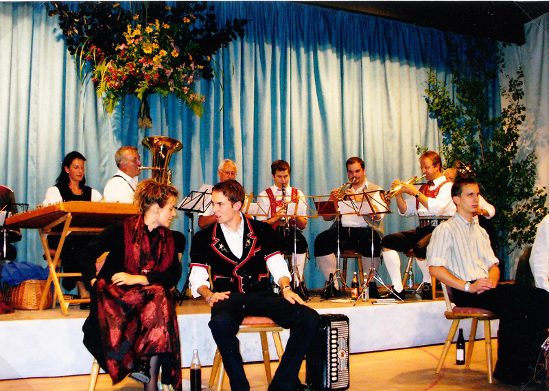 Auf Einladung des Alphorn-Wirtes Jörg Pöschl geben wir auf der Terrasse ein kleines Konzert mit anschließendem „Musig-Hock“, wobei wir von Jörg auch in kulinarischer Hinsicht aufs Beste verwöhnt werden.