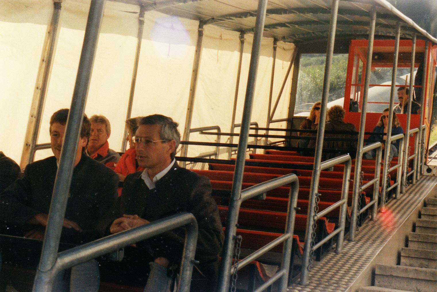Richard Math und Franz Kolb in der Zahnradbahn auf den Golm