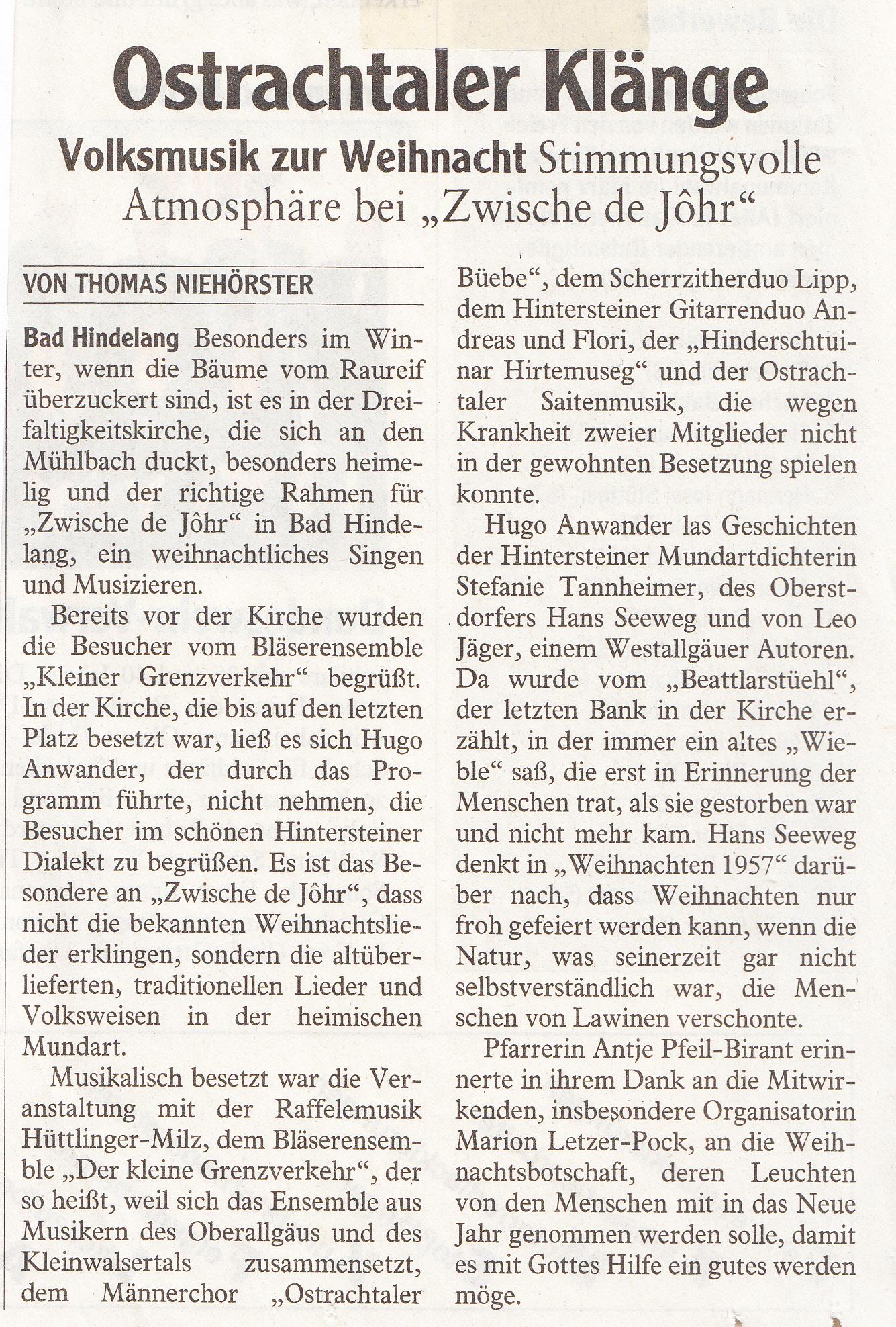 17.12.2011 „A riebige Stünd“ Advent im Kurhaus Oberstdorf ab 17:30 Uhr und in der Pfarrkirche Hinterstein ab 19:30. Knappe Terminierung bei starkem Schneefall. Die Fahrt nach Hinterstein bleibt unvergessen.